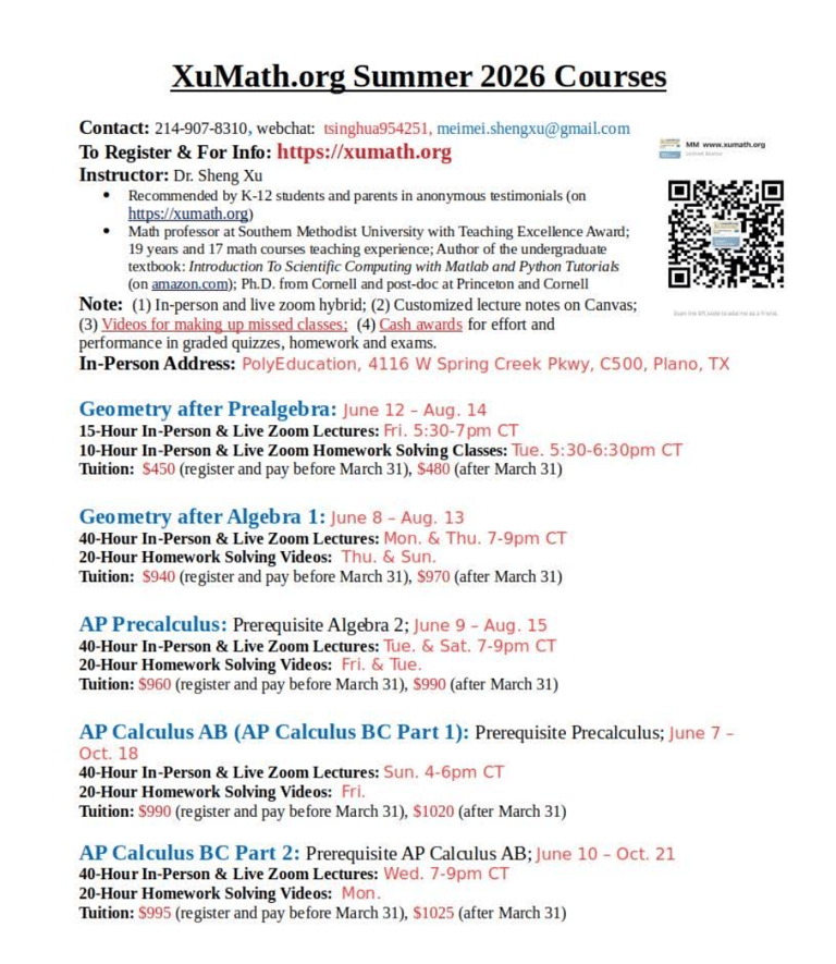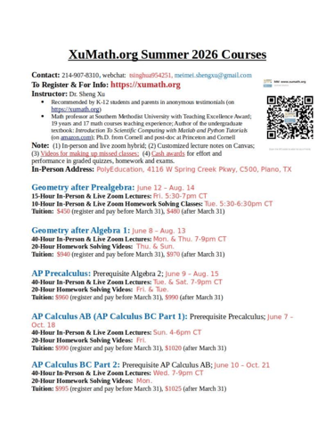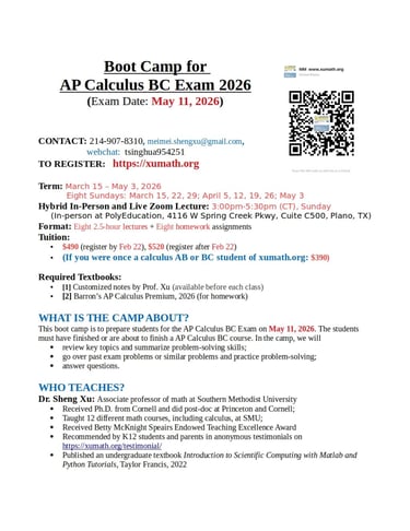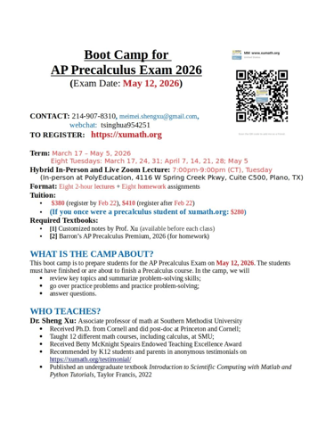 XuMath Spring AP Exam Boot Camp Registration Open