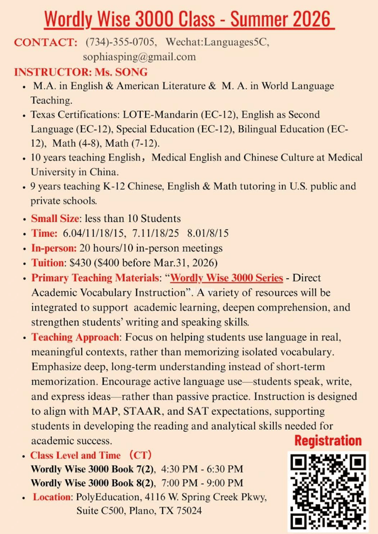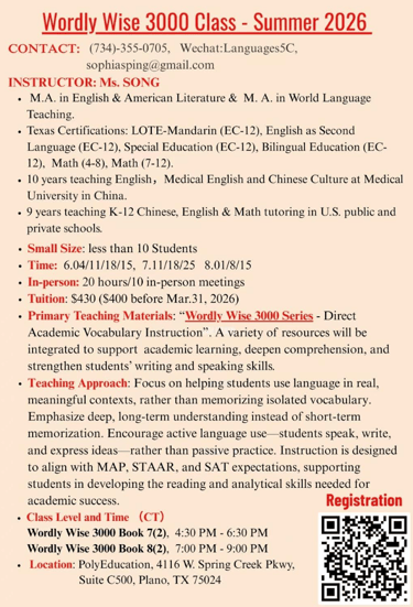 Mrs. Song's English Class Registration Open