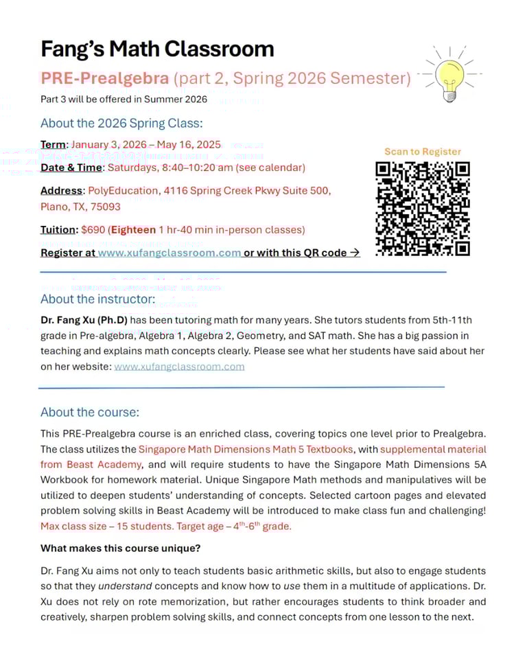 Fang's Math Classroom Registration Open